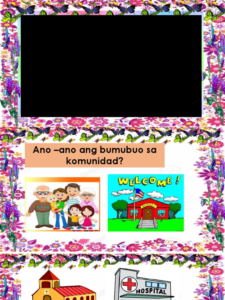 Ang Aking Munting Komunidad Natutukoy ang kahalagahan ng komunidad Nasasabi ang tungkulin ng bahagi komunidad sa pamumuhay ng tao Pamantayan sa pagbabasa at pakikinig 1. Malayang makapaglahad ng mga hinaing laban sa gobyerno ng walang banta ng pwersa. Ang ating mga pamilya ang nagsisilbing unang guro sa atin.