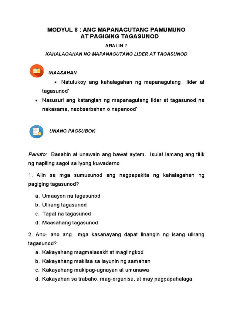 Ang Mapanagutang Pamumuno At Pagiging Tagasunod Pdf