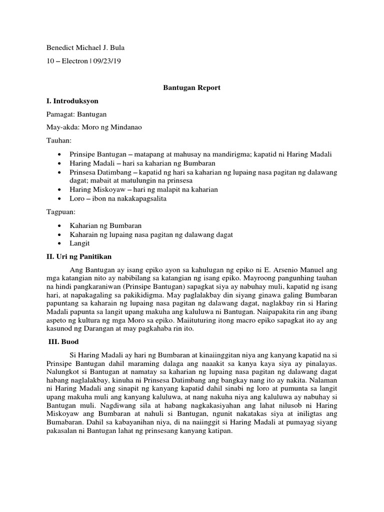 Table of contentsCharacters of Bantugan - Tauhan sa Bantugan TagalogConclusion sa Bantugan Characters o Tauhan sa TagalogPara Sa Iba Pang Filipino. Ito ay kinalap mula sa mga makatang Pilipino na nagpasalin-salin ng mga epiko hanggang sa ngayon. Ito ay kinalap mula sa mga makatang Pilipino na nagpasalin-salin ng mga epiko hanggang sa ngayon.